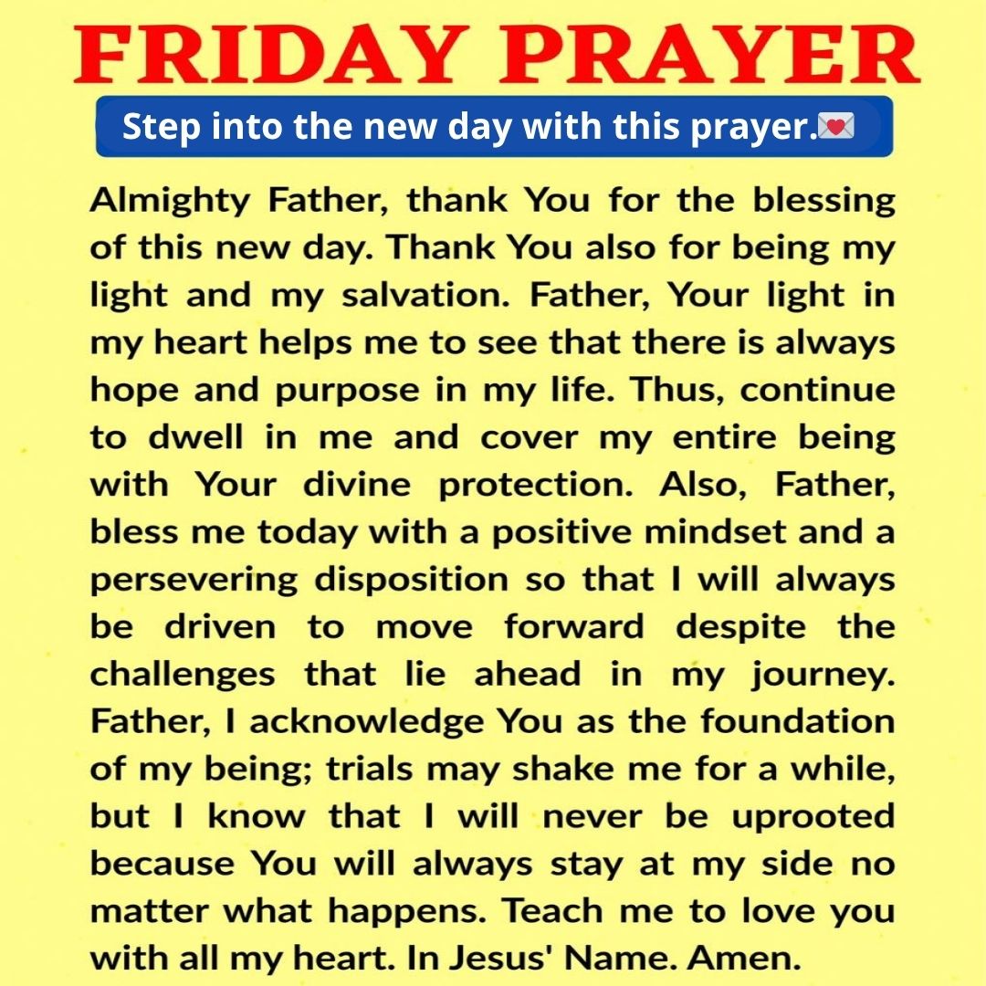 Good morning, dear friend. As this Friday begins, take a quiet moment to slow down and breathe. The day is just starting, and your heart may already feel tired, carrying the weight of the week, silent worries, or a deep need for peace. Maybe your body feels tired, your thoughts feel heavy, or your emotions feel unsettled. But right now, before anything else begins, you have chosen to come into God’s presence—and that changes everything.