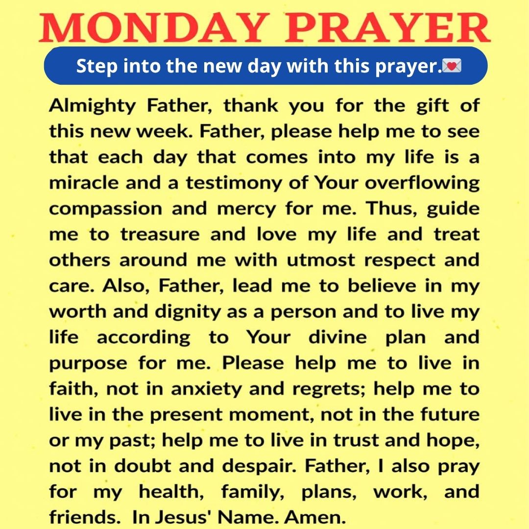 Almighty Father, thank You for the precious gift of this new week. Help me recognize that every single day is a miracle — a living testimony of Your endless mercy and compassion. Teach me to cherish the life You’ve given me and to treat everyone I meet with kindness, respect, and love.