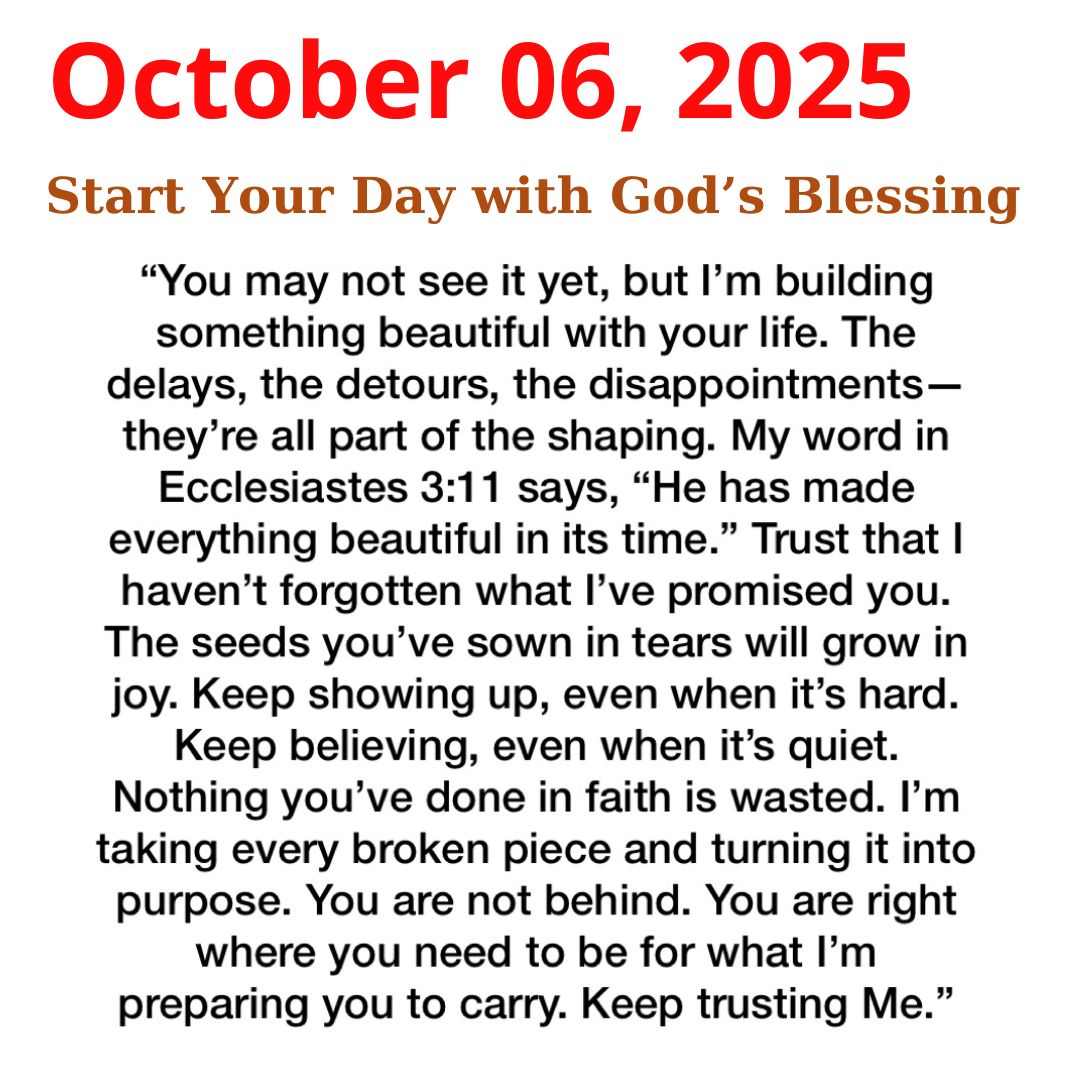 Today, I want to live with faith. I choose to remember the past not with sorrow, but with gratitude and joy. Even when things don’t unfold the way I desire, I trust that You are working with power and wisdom, turning every moment into something good. I believe that everything You allow carries a purpose, and Your plan will always be greater than mine.