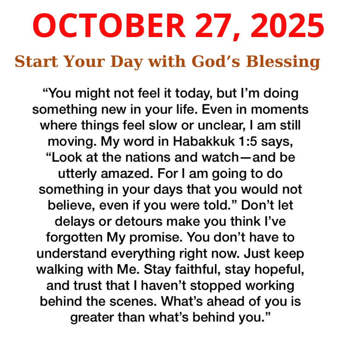 Our Father, You always care for Your children. You bless our projects and pour out Your mercy upon us. Thank You, Lord, for the rest and peace of this morning, for the sleep that renewed my strength and prepared me to face today’s challenges with courage and trust in You.